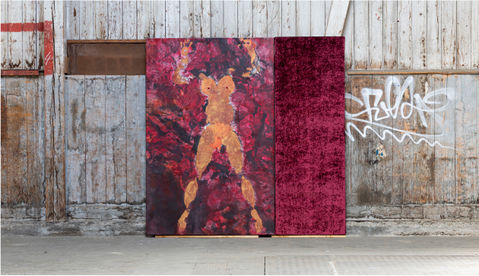 Opposing the organic forms however are distinctive letters on velvet ground. They form words, parts of sentences and entire phrases, sometimes whole texts – their message often as powerful as haunting. Inscribed into the gently glossy textile they almost resemble fading memories, while at the same time conveying a perfectly clear message.